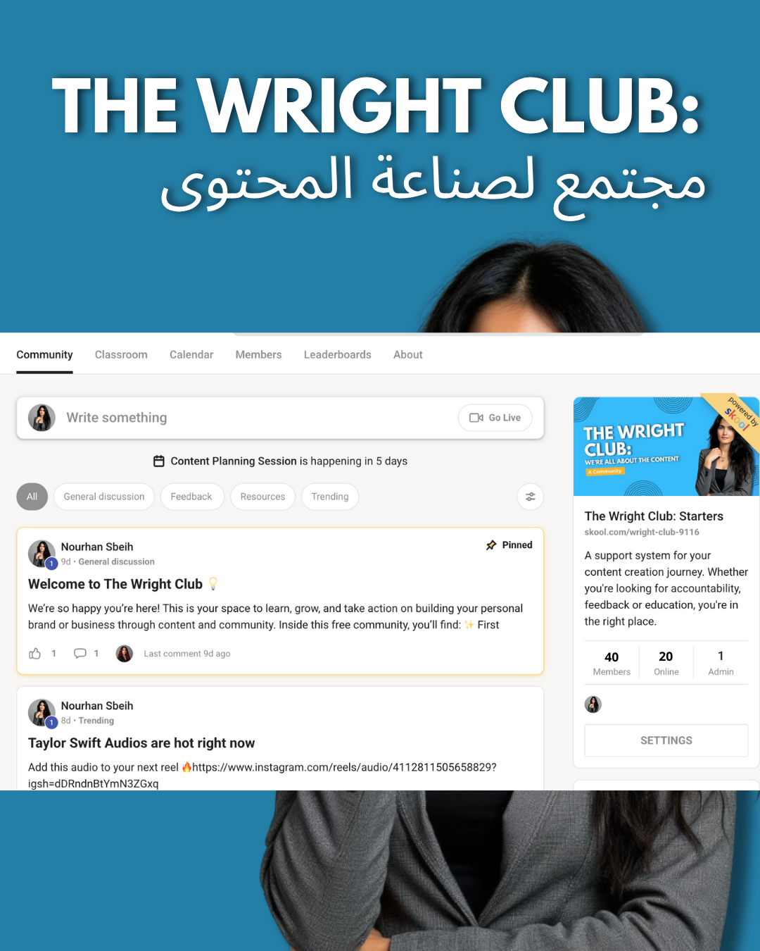 انضمي لمجتمع من رائدات الأعمال وصانعات المحتوى لتحصلي على المتابعة، الدعم الحقيقي، والمعرفة في كل ما يخص المحتوى